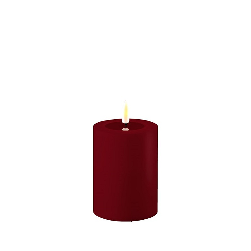 VELA LED DE CERA CON LLAMA REAL 7,5 X 10 CM BORDEAUX LISA